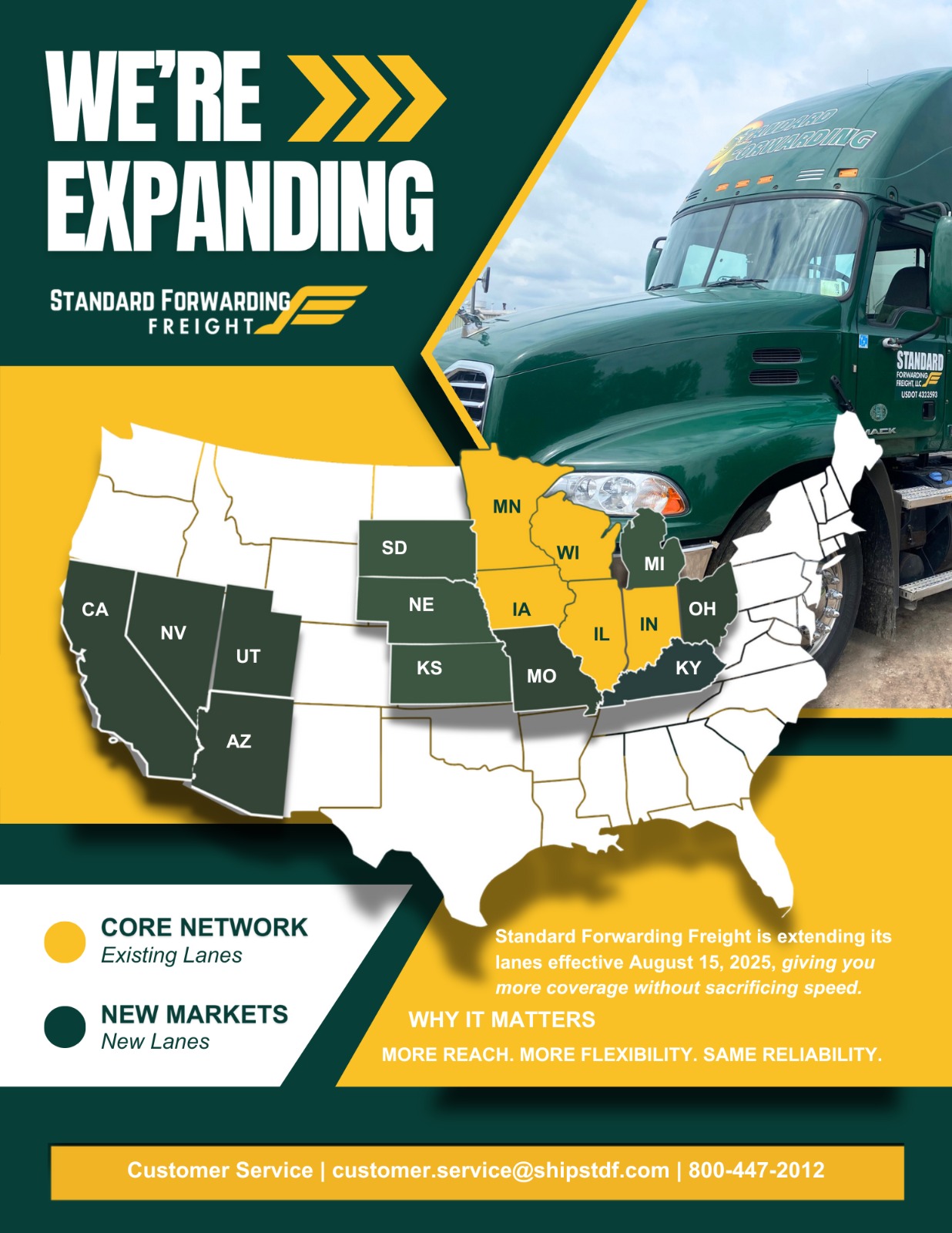 By expanding into new freight lanes, Standard Forwarding Freight helps businesses streamline logistics, reduce transit times, and grow with confidence. This milestone reinforces the company’s commitment to being a trusted LTL carrier with unmatched service across the region.